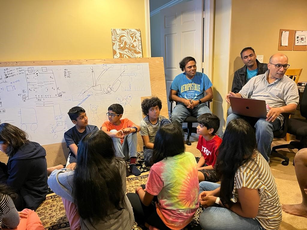 TechkNOWLogic is proud to host Prof. Girish Chowdhary from University of Illinois at Urbana-Champaign, to our workshop. Prof. Chowdhary gave an inspiring lecture on the need to reduce soil contamination from excessive use of fertilizers, and how small robots can be part of the solution. Prof. Chowdhary is one of the founders of EarthSense, a company that designs robots to plant cover crops, assess crop health, and assist in phenotyping. Planting cover crops is a natural way to reduce reliance on fertilizers for restoring the balance of nutrients in the soil. Interestingly, their robots are not much bigger robots we make for the FTC competition. We had an interesting discussion on the types of chassis, and collision avoidance, which we are incorporating in our tele-op and autonomous code.